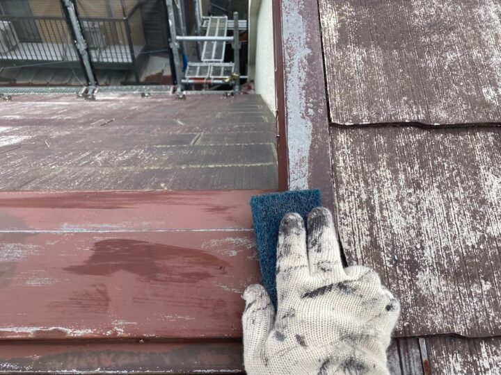 鉄部には全て密着性に優れるエポキシ樹脂錆止めを下塗りしてから上塗りします。